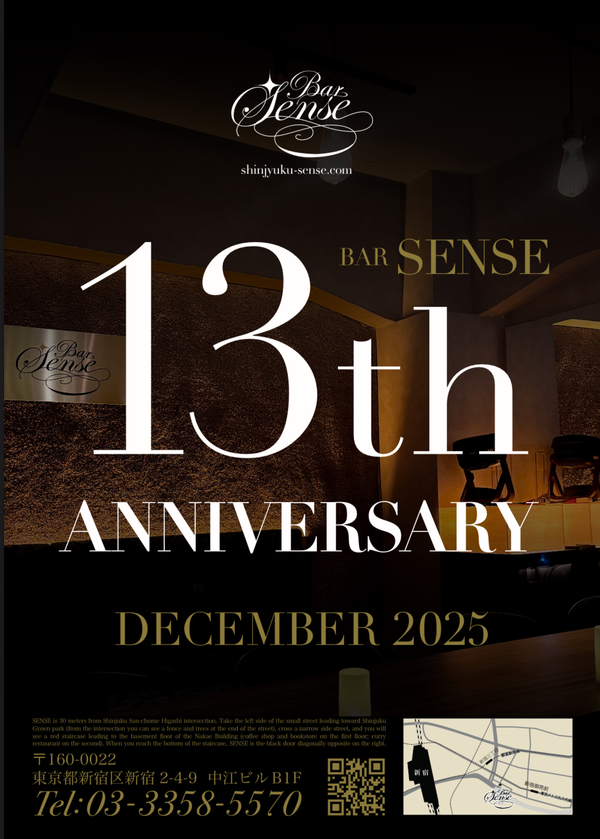 SENSE is close to Shinjuku Gyoen park and only a short walk from Shinjuku’s Ni-chome gay area. We are an all-gender, all-sexualities bar. Our customers include cross-dressers an transgender persons, and straight visitors are of course always welcome as well! Come and enjoy a drink in quiet, relaxed surroundings. We look forward to seeing you!