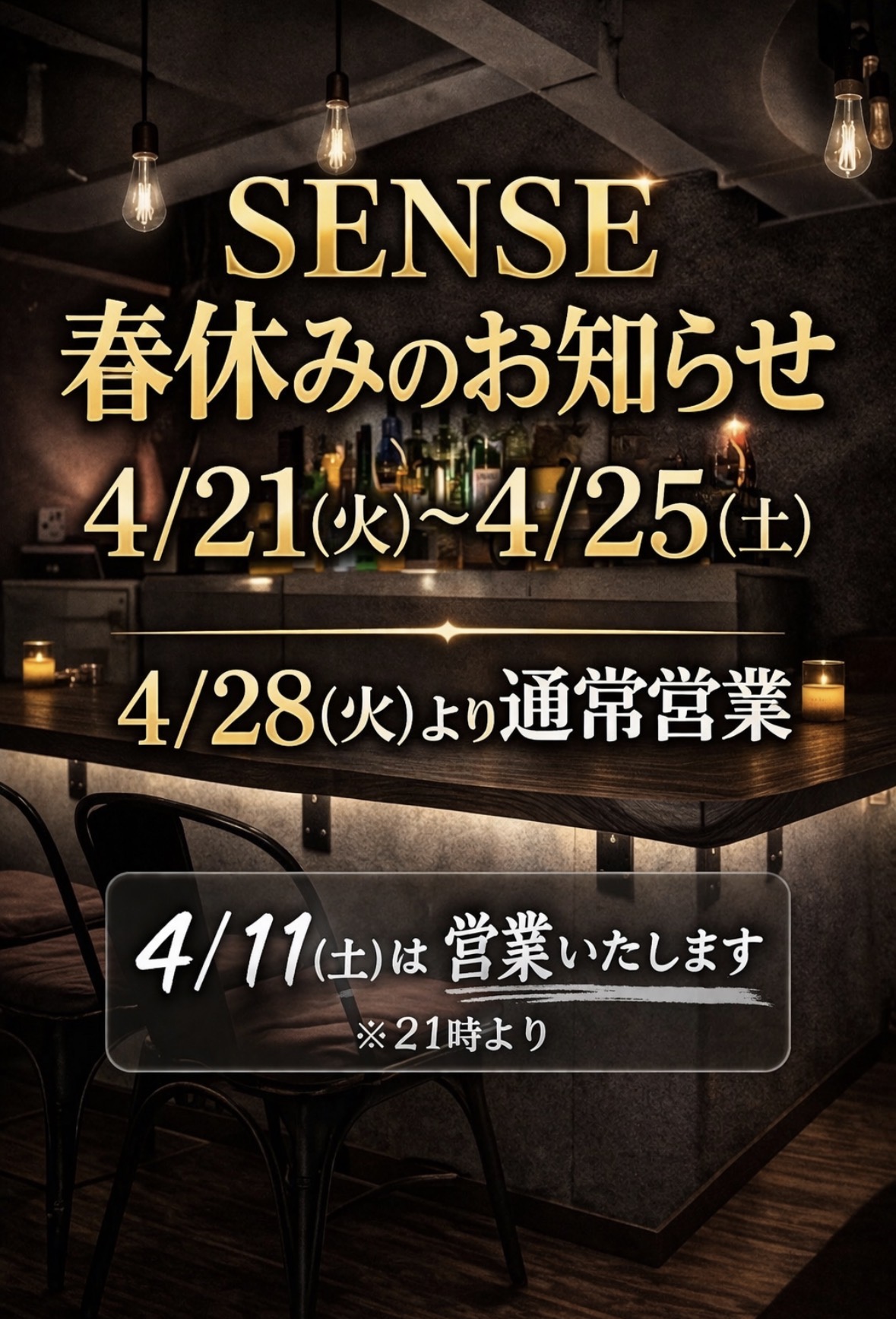 4/11(土)営業いたします&春休業のお知らせ
